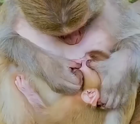 From the moment a baby monkey is born, its mother’s focus shifts almost entirely toward the infant. Her gaze is drawn to every movement, sound, and facial expression, but it is the eyes that seem to capture her most. There is something magnetic about those tiny, glistening orbs—their curiosity, vulnerability, and liveliness. The baby’s eyes communicate far more than words ever could, conveying wonder, trust, and a developing understanding of the world. The mother responds instinctively, locking her gaze onto her baby in a way that is both tender and intense.