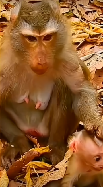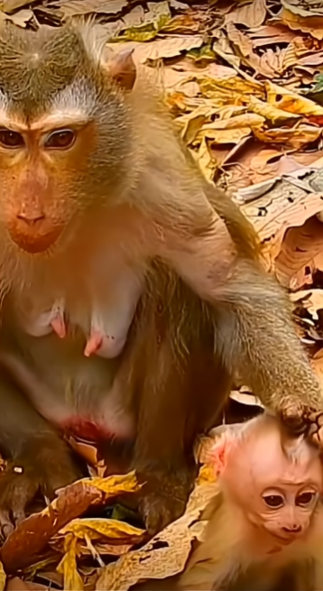 Libby was a relatively young mother in a small troop of macaques. She had recently given birth to her first baby, a tiny, curious infant she named Leo. Like many first-time mothers, Libby was eager to protect and train her baby, but her energy often manifested in ways that were too strict or unintentionally rough. From the very first days, she carried Leo constantly, adjusting her grip and handling him in ways that sometimes made the infant squirm or cry. Her intention was to teach him safety and independence, but her approach was clumsy, driven more by instinct than skill.