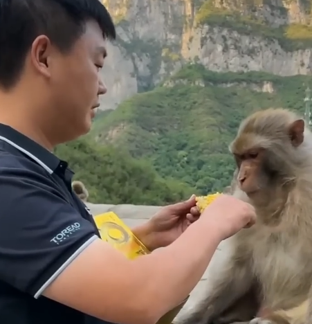 Observers often find these moments both entertaining and educational. Watching the alpha male peel kernels with careful precision, occasionally toss a morsel to a subordinate, or gently correct a mischievous younger monkey offers insight into the intelligence and social complexity of primates. The simple act of eating corn becomes a lens through which we can appreciate leadership, social learning, and the playful, dramatic, and sometimes humorous dynamics of monkey society.
