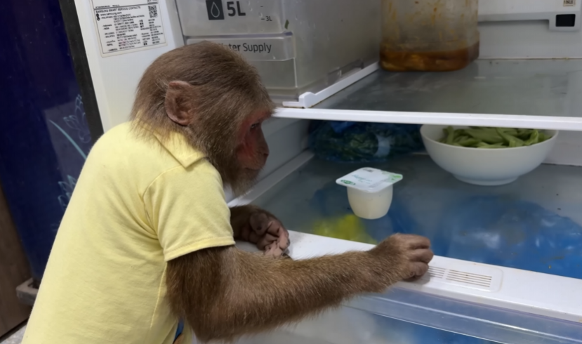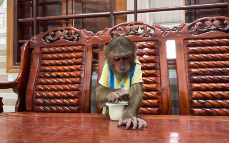 CUTIS stood up again, walked over to Mom, and did something unexpected—pointed at Mom’s mouth. Then CUTIS mimed chewing happily and smiled sweetly… before instantly switching back to an angry face.