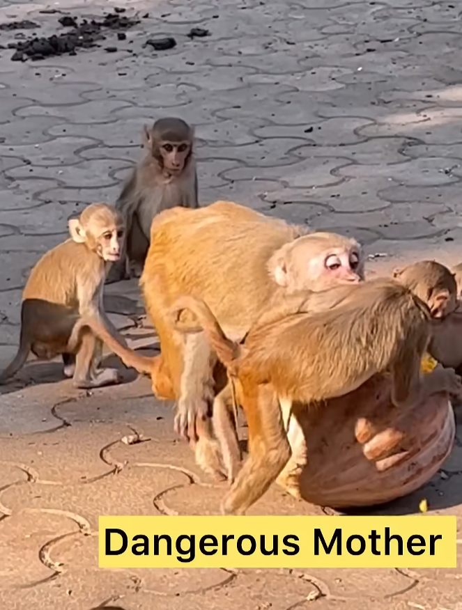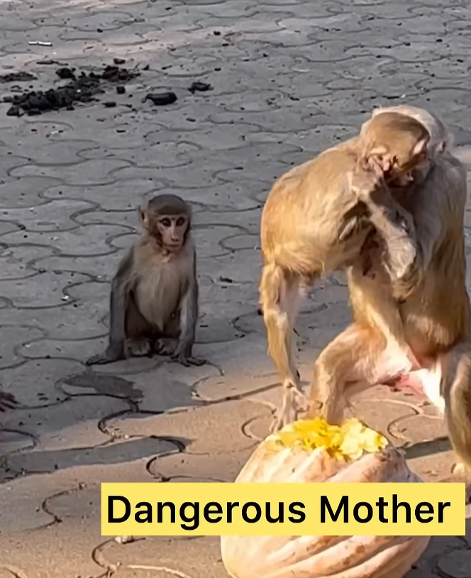 The mother monkey didn’t hesitate. She shifted her position, placing herself fully between the attacker and her baby. Her body became a living shield. Every movement she made was focused on one goal: protect her child at all costs.