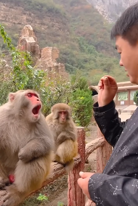 As the day continued, Kiko’s reputation grew. He wasn’t just another baby monkey—he was the prankster, the entertainer, and the “touching monkey” of the troop. Younger monkeys began copying his actions, approaching humans cautiously, testing the boundaries of playful interaction. But none could match Kiko’s energy, timing, or cleverness. He had mastered the art of teasing without ever giving up his autonomy, proving that not every interaction needed a reward.