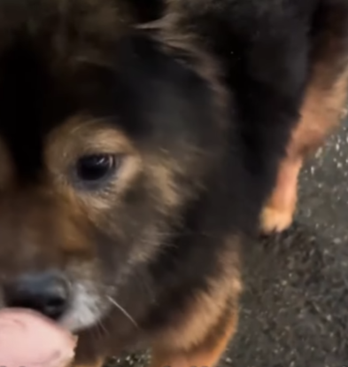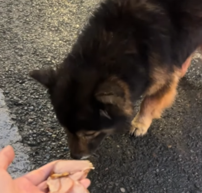 I reached into my bag and pulled out the food I had just bought. Kneeling there on the pavement, tearing open a package meant for my own dinner, felt surreal. He didn’t rush me. He didn’t lunge. He sniffed cautiously, then ate with careful urgency—like someone who had learned that food could disappear at any moment.