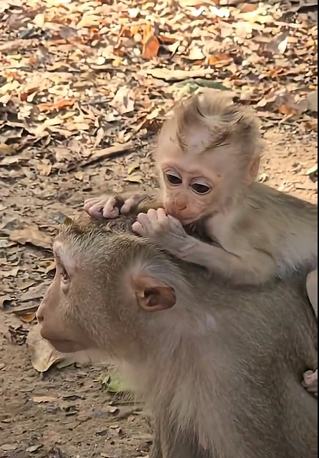 The forest was alive with energy. Birds chirped high above, insects buzzed around vibrant flowers, and sunlight filtered down in golden patches. But amidst all this, Bobby stood out. His playful movements, curious glances, and expressive eyes seemed to brighten the forest itself. As he clutched his mother’s fur and looked around, his small lips curled into what seemed like a cheeky grin. Every movement, every sound, every little squeak made it clear why everyone watching would exclaim: “Oh my gosh! So adorable baby #BabyMonkeyBobby!”