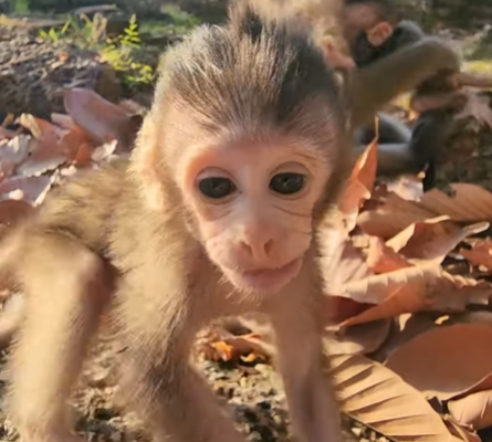 In the heart of a lush, sunlit forest, life for the little monkeys was full of curiosity, laughter, and adventure. Among all the tiny monkeys bouncing from branch to branch and exploring every nook of the forest, one stood out for her remarkable charm and friendly nature: JOLAN, the sweet baby monkey who seemed to have a special connection with everyoneâand everything, including the camera.