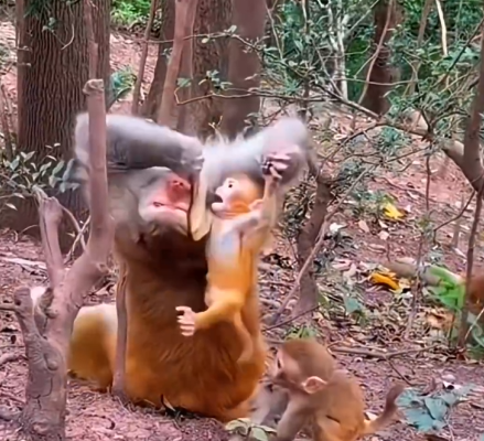 Sometimes, other young monkeys would join in the fun, attracted by the laughter and excitement. The mother welcomed these interactions, showing patience and guidance as the babies played together. Through these group games, the baby learned cooperation, communication, and the dynamics of social interaction. Even the older monkeys seemed to smile at the antics, their usual seriousness softened by the joyful energy radiating from the happy mother and her baby.