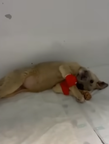 Help came quickly after that. A local rescue group was called. The family was taken to safety, wrapped in blankets, carried with care. The smallest puppy was rushed to a vet, where doctors worked through the night to stabilize him. It was close—too close—but he survived.