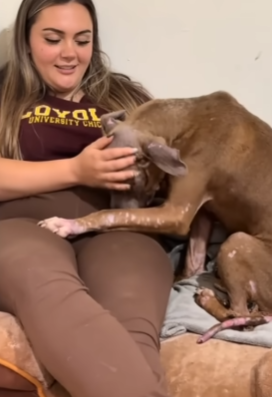 The volunteer’s heart melted at the sight. Years of neglect and fear seemed to vanish in an instant, replaced by pure trust and joy. Hope’s response was not just a reaction to physical touch; it was an expression of an emotional awakening. It showed that despite the hardships he had endured, the capacity for love and trust had never been lost.