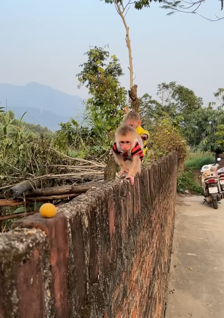 Other monkeys began to follow the example set by MiMi. When a new batch of fruit appeared the next day, MiMi again stepped back to allow the smaller monkeys their first share. Kiko, now growing in confidence, also began to mimic her actions, gently nudging others to ensure everyone had a fair portion. The small act of generosity had created ripples of kindness throughout the group.