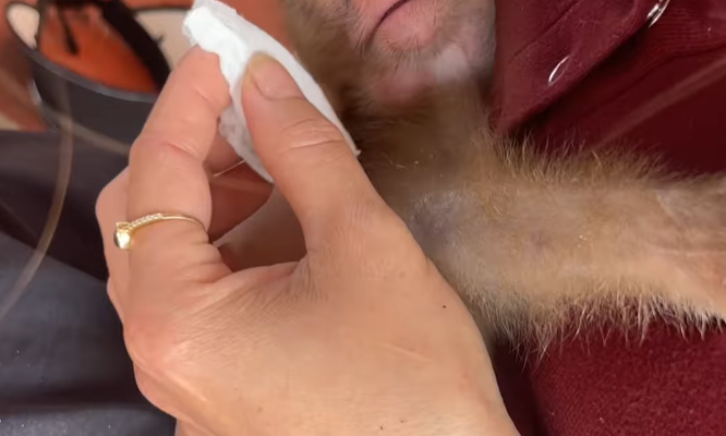 The mother monkey understood this instinctively. She did not need words. Her actions spoke clearly. By washing her baby’s face and nose before bedtime, she was doing more than keeping it clean—she was teaching comfort, calm, and security.