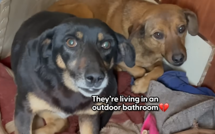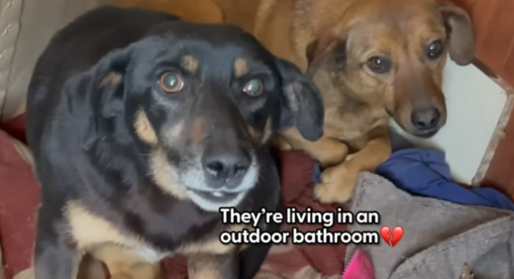 These Dogs Were Living In An Outdoor Bathroom — Now They’re Thriving