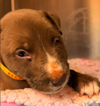 The puppy was huddled in the corner of a concrete room, his body unnaturally stiff, his eyes wide with fear. His fur was patchy and dirty, his ribs visible beneath his skin. One of his front paws looked swollen, twisted at an angle that made my stomach turn. He didn’t look like a puppy who had known kindness. He looked like a puppy who had learned early that the world was not safe.