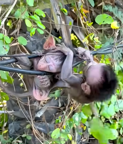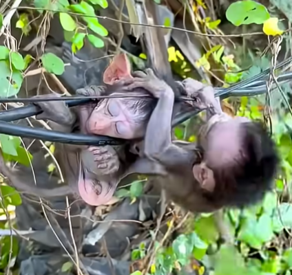 The mother monkey was gone. But the baby—oh, the baby—was alive, clinging desperately, refusing to let go of a body that could no longer protect him.