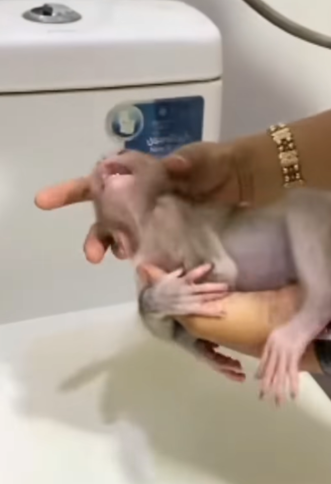 What made the moment especially adorable was how expressive the baby monkey was. When the warm water touched its feet, it lifted them quickly, then put them back down as if testing the temperature again. When its face was gently cleaned, it closed its eyes and leaned forward, trusting the hands that were caring for it. That trust is something very special, especially in such a young animal.