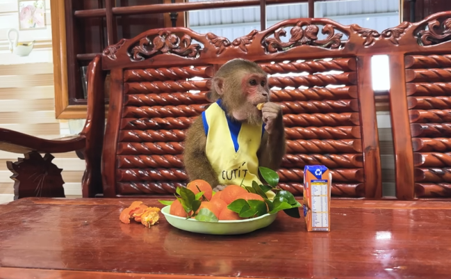 CUTIS had always been curious, clever, and daring. Unlike other baby monkeys who might stick to playing with sticks, leaves, or fruits, CUTIS had developed a fascination with Mom’s belongings. From her colorful scarf to the small basket of snacks she kept on the low table, everything seemed to call to him as if it were a treasure. And while his antics could sometimes frustrate his mother, they also charmed everyone who witnessed them, including fans who followed CUTIS’s adventures online.