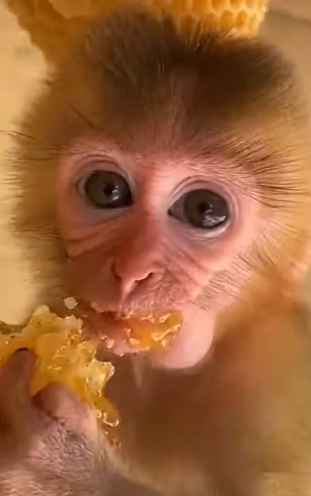 Without thinking, the monkey brought the sticky finger to its mouth. One tiny lick—and everything changed. The expression on its face melted into pure joy. Sweet. Rich. Amazing. The monkey made a happy sound and licked again, completely forgetting about the bees, the flowers, and the concept of being careful.