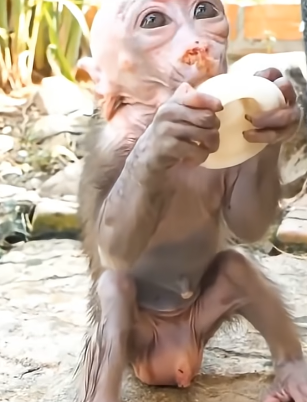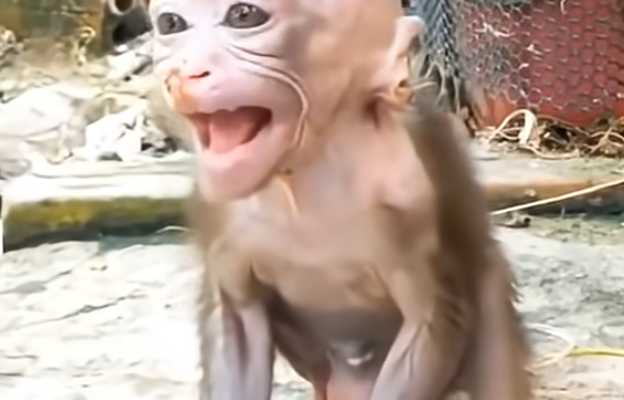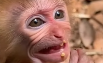 The morning started out like any other, with soft light filtering into the small space where a baby monkey sat beside his dad. The baby monkey was still sleepy, his fur slightly messy, eyes half-open, and his tiny hands resting on his round belly. Mornings usually meant one very important thing to him: milk. Warm, comforting, familiar milk. But this morning felt different, and the baby monkey didn’t yet know why.