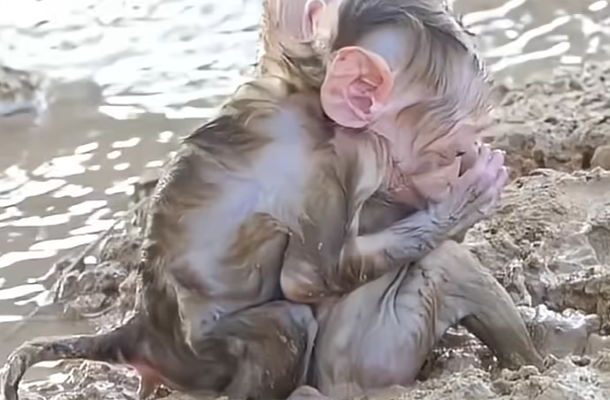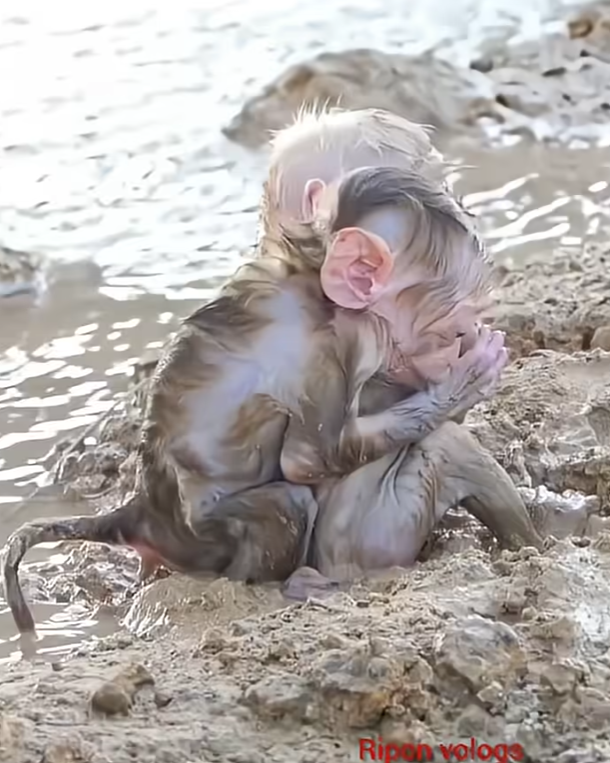 Nearby, another monkey paused to watchâa quiet witness to the scene. In the wild, life was often described as harsh, but moments like this told a deeper story. Kindness lived here. Care lived here. Even in the mud.