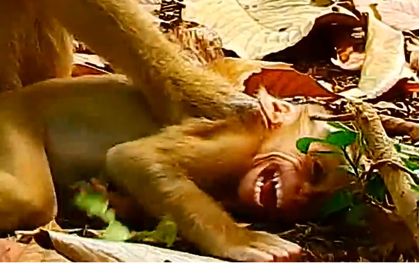 The baby monkey, barely a few months old, had a fiery spirit that distinguished it from its siblings. Its tiny hands and nimble fingers were always moving, exploring, and testing the world around it. While other infants clung shyly to their mothers or played cautiously among the lower branches, this young monkey confronted the world head-on, often challenging both peers and adults alike. But on this particular day, its anger flared in ways that would leave a lasting impression on the troop.