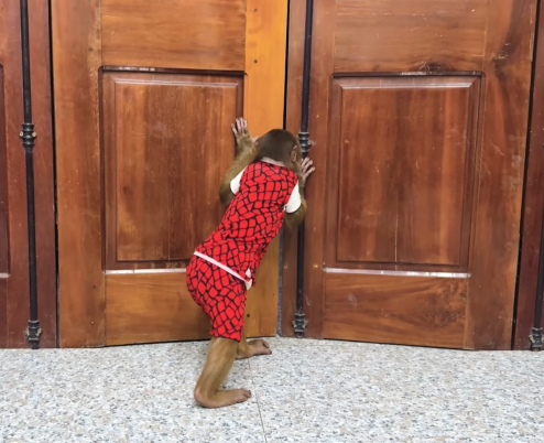 CUTIS moved quietly, signaling with subtle gestures. No loud noises. No sudden moves. Everyone watching held their breath as he climbed down, step by step, placing objects exactly where he wanted them. A rope here. A basket there. A small piece of food placed carefully in the open. To anyone else, it looked careless. To CUTIS, it was bait.