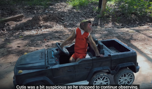 The stranger stood at a distance, unfamiliar and clearly not part of the usual environment. While others stayed cautious, CUTIS tilted his head, studying this new figure carefully. He wasn’t afraid. He wasn’t aggressive. Instead, his face showed pure curiosity, mixed with a playful grin that usually meant trouble was coming.