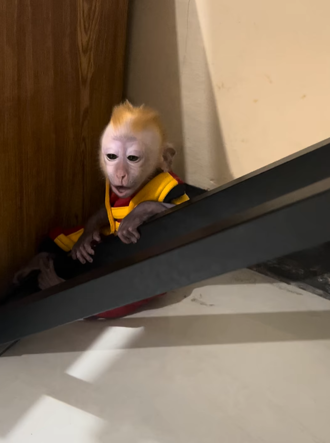 Nearby, another baby monkey took a few clumsy steps and fell, then laughed and tried again. Monpai watched carefully. His crying slowed as curiosity replaced fear.