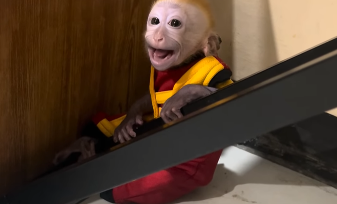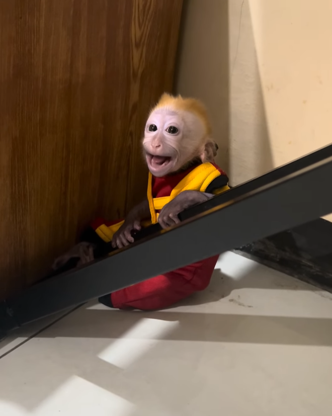 Soon, he lowered himself back down and crawled into the caretaker’s lap, exhausted. His tiny body trembled slightly, not from fear now, but from effort. Learning was tiring.