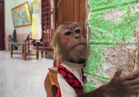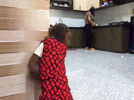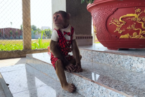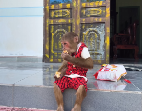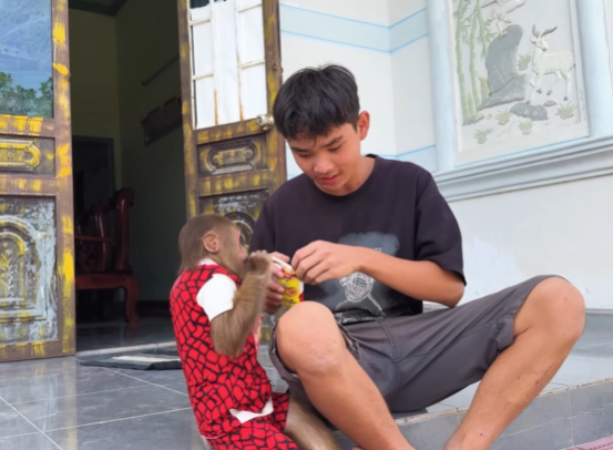 Nearby, a few villagers passing by couldn’t help but stop and watch. They smiled and shook their heads. A monkey taking a goat for a walk was already unusual—but watching them play together added a magical charm that warmed even the coldest hearts.