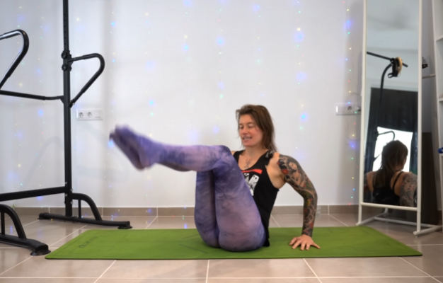 Pancake stretch is a cornerstone of advanced leg and hip training. Sit with legs wide, inhale to lengthen the spine, and exhale to fold forward. Use your hands for support, but avoid pulling yourself down aggressively. Over time, this stretch increases hip mobility, hamstring length, and pelvic control.