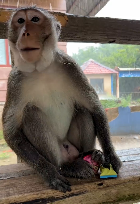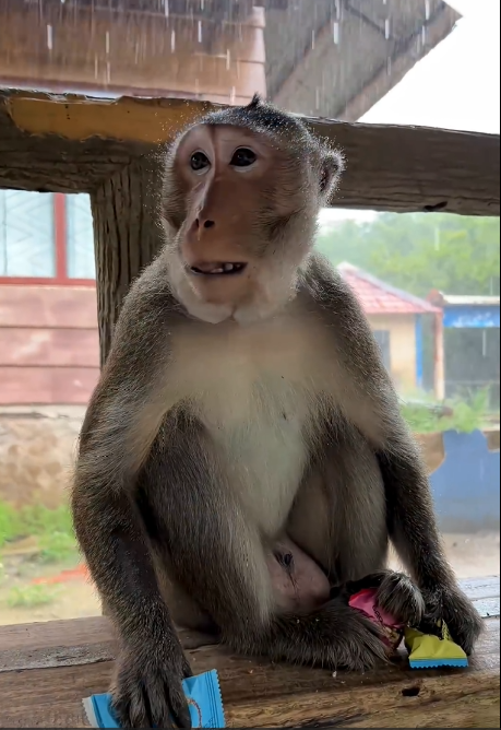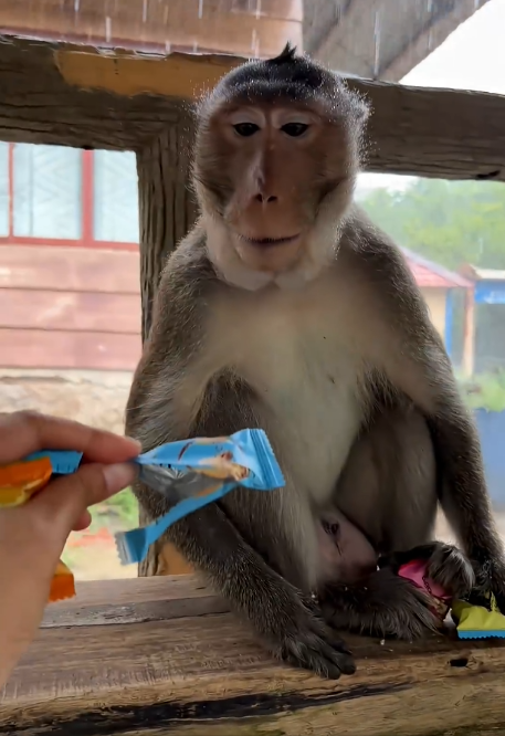 Momo’s behavior demonstrates the complexity and intelligence of monkeys. He is not only aware of his surroundings but also capable of interpreting human actions. Teasing triggers a strong reaction because it represents a challenge to his control over the food—a resource he values highly.