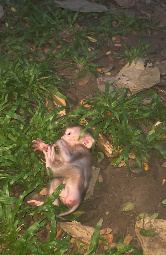 The baby monkey pauses again, lifting its head as high as it can. Somewhere, there is a familiar sound—a call, a movement, a scent. The baby strains to detect it. This search is not only physical; it is emotional. The baby longs for warmth, familiarity, and reassurance. Being lost is painful not because of danger alone, but because of separation.