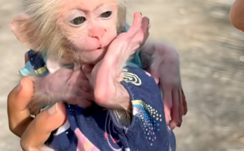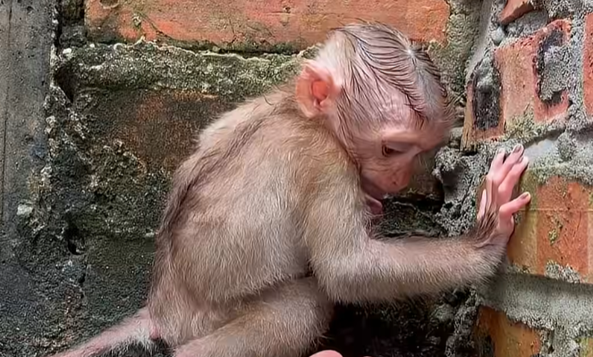 Baby monkey Susu sat quietly on the ground, his tiny shoulders slumped and his bright eyes dulled with sadness. Just moments ago, he had been full of energy—climbing, exploring, and testing his growing independence. But something had gone wrong. Perhaps he slipped. Perhaps his mother moved a little too far away. Or perhaps he was simply overwhelmed by the big world around him. Whatever the reason, Susu was sulking, wrapped in his own small disappointment.