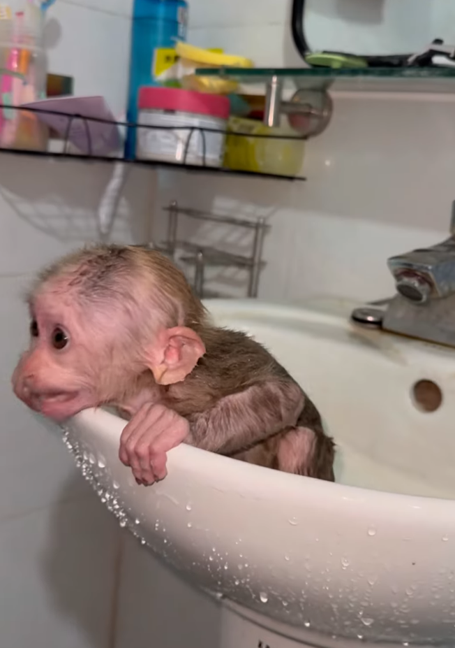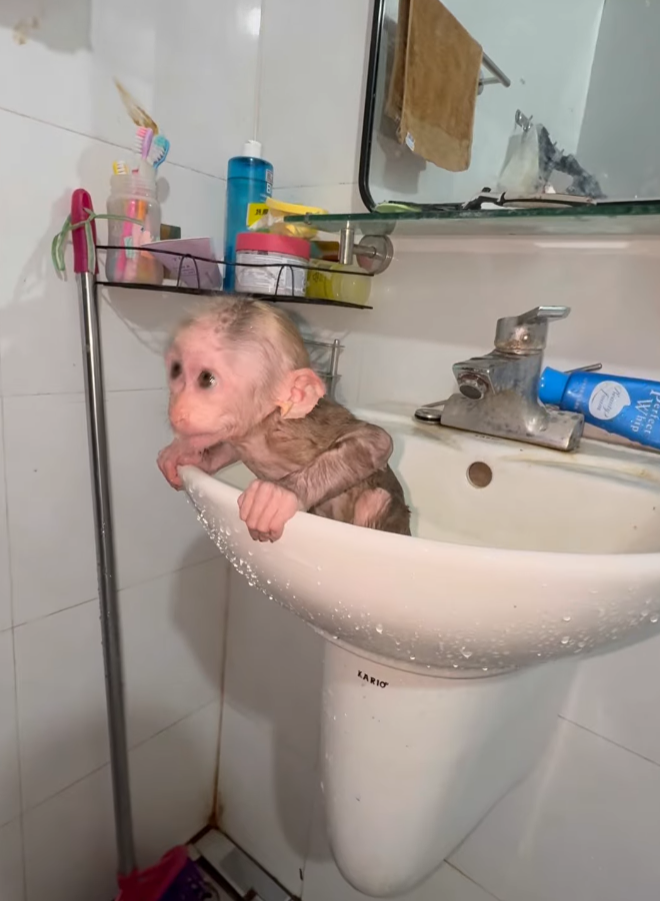 Bibi is still young. Like many baby monkeys, his world is defined by comfort, familiarity, and choice—when to move, when to cling, when to explore. A bath disrupts all of that. Water feels strange against his fur. It soaks him, makes him feel heavier, and takes away the warmth he depends on. To Bibi, refusing a bath is not stubbornness. It is self-protection.
