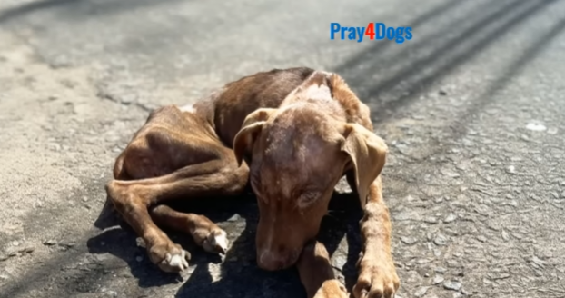 The road curved like a tired ribbon through the outskirts of town, dust rising softly each time a motorbike passed. It was a place people hurried through, never a place to stay. Yet she stayed. Day after day, season after season, she lay beside the cracked shoulder of asphalt where weeds pushed through stone and heat shimmered like a mirage. Her fur had once been a warm, honeyed brown. Now it was dulled by sun and rain, matted in places where she slept curled against the cold. Still, her eyes—wide, patient, endlessly hopeful—searched the road.