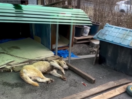 She slept beside a rusted gate at the edge of a narrow alley, where the wind cut sharply in winter and the sun burned mercilessly in summer. Her chain was short, just long enough to let her curl into a tight circle or stand and stare at the road beyond the gate. She watched people pass every day—children laughing, vendors calling out prices, neighbors chatting—but none of them ever stopped for her. They all knew she belonged to someone, even if that someone treated her as if she were nothing more than an object nailed to the ground.
