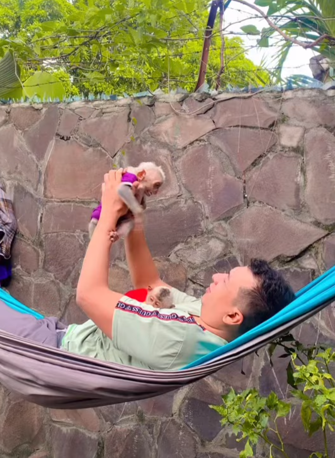 The baby monkey—everyone called him Milo—was hanging from a low branch, swinging back and forth like he was auditioning for a circus. His tail wasn’t helping much, his grip was questionable, and his confidence was way higher than his skill level. The other monkeys were nearby, busy grooming or eating fruit, completely unbothered. His mother was watching, but in that calm, experienced way that said, I’ve seen worse. He’ll survive.