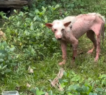 The alley was silent except for the occasional rustle of wind through broken fences and the soft patter of distant feet. It was a place people rarely walked and even fewer stopped to look. Among the debris and discarded items, a small figure crouched in the shadows. His body was thin, frail, and trembling. Every rib was visible beneath matted fur, every joint stiff from days of cold and hunger. Hunger had hollowed his eyes, but there was more than that—there was fear, sorrow, and the weight of having been abandoned by the world that was supposed to protect him.