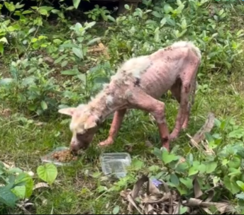 When he finally reached the bowl, something extraordinary happened. He didn’t just eat. His body shook, and small, quiet whimpers escaped his lips. He knelt there, as though he had forgotten how to sit like a dog, as though the act of receiving kindness was too much to bear. His eyes welled with tears—tears of hunger, yes, but also tears of relief, gratitude, and the release of all the pain he had carried alone for so long.