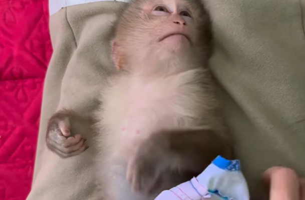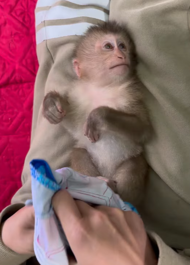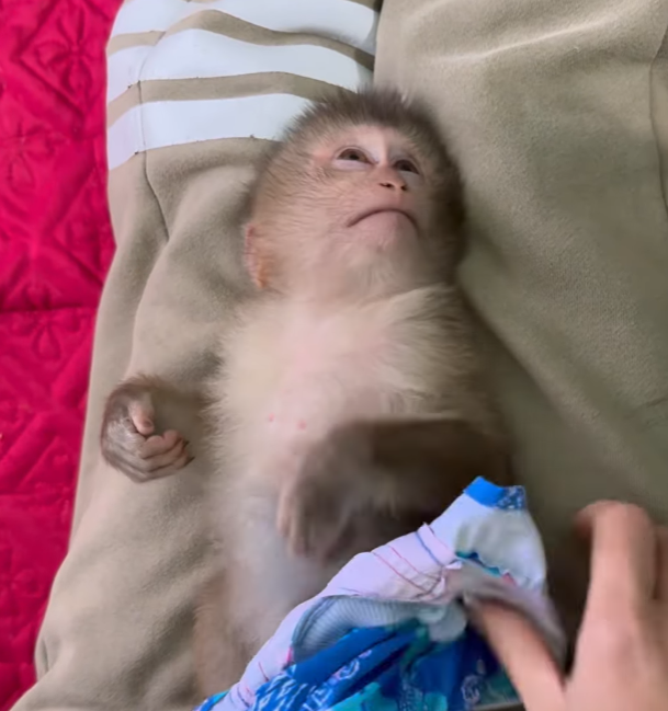 Minutes passed, then more. Bubu shifted once, then settled again, completely calm. His eyes fluttered, then closed. The playful monkey who had ruled the day was now fast asleep.