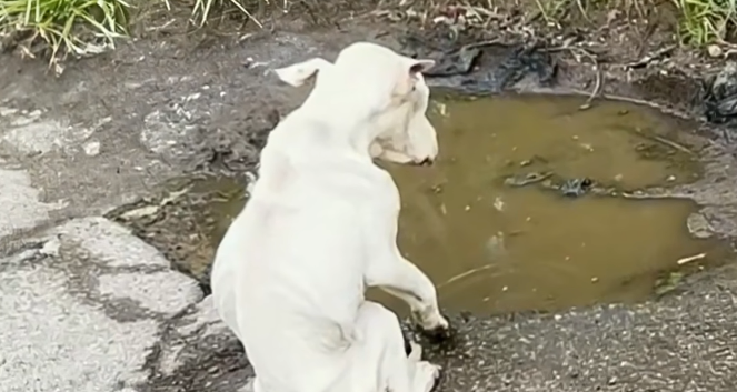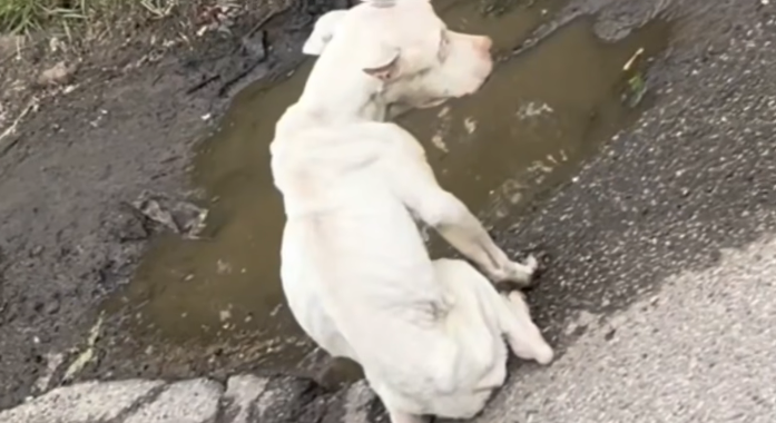 She lay motionless beside a shallow puddle, her fragile body pressed against the cold ground. The water in front of her was brown and muddy, stirred by passing feet and falling dust. It was the only water available for miles, yet even that was out of reach. She was so thin and weak that she couldn’t lift her head to drink it. Her breathing was shallow, each rise and fall of her chest barely noticeable, as if life itself was gently slipping away.
