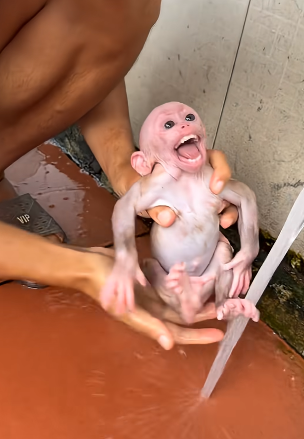 The bath continued calmly now. Mom washed him gently, never rushing, never forcing. The baby monkey allowed it, still alert but no longer panicked. He even leaned into the warmth at times, eyes half-closed.