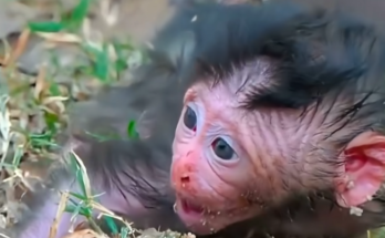Mom lowered him slowly, carefully, hoping a gentle approach would help. The baby monkey reached out desperately, grabbing at anything—fur, fabric, air—his fingers scrabbling as if the ground itself had betrayed him.