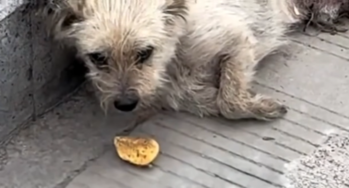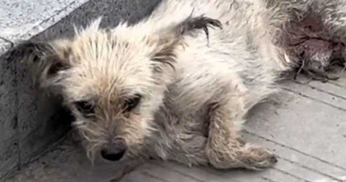 Un cane randagio, trattato come un giocattolo, si era rotto le zampe e giaceva aspettando la morte