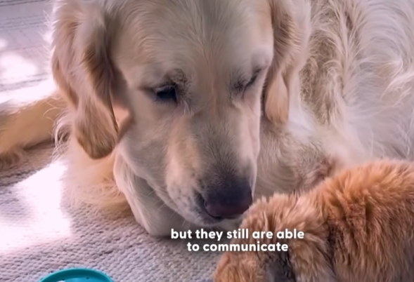 The Golden Retriever lay on the floor nearby, completely still, his head resting gently on his paws. He didn’t rush toward her. He didn’t bark or move suddenly. He simply watched, his eyes soft and curious. It was as if he instinctively understood that this tiny creature needed patience more than anything else.