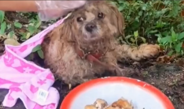 The rescuer gently slid a small bowl of water toward him. He didn’t drink. His lips trembled, and another weak cry escaped him, this one filled with exhaustion rather than fear. His head dropped to the ground, and his eyes fluttered shut, then opened again in panic as if he were afraid he might not wake up if he slept.