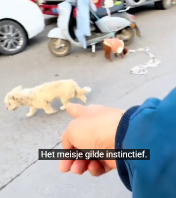 It took the help of two other pedestrians to block traffic while Lina tried to move him out of danger. They used a jacket to shield his eyes from the sun and gently dragged him to the sidewalk. The moment his paws touched solid ground away from the road, he tried to scramble up again, still convinced he needed to run.