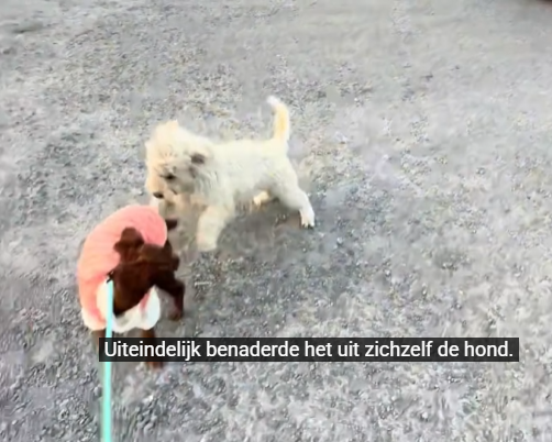 He walked straight to Lina and leaned his entire body against her legs, looking up with eyes full of gratitude. No fear. No hesitation.
