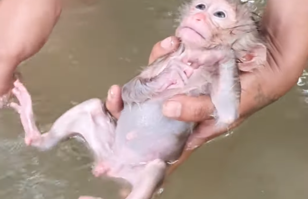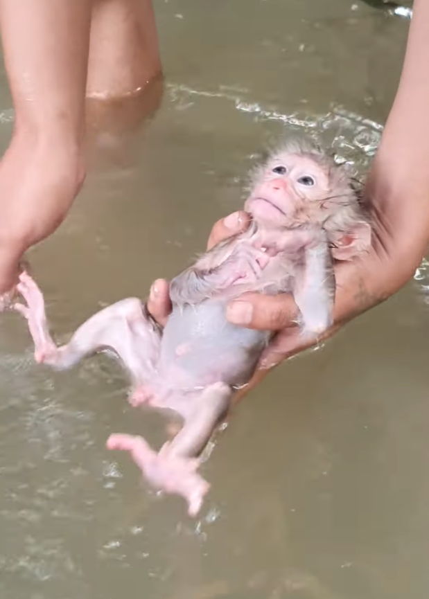 Mud washed away from his arms. Dried blood faded from his face. Leaves and insects fell free from his fur. With every careful movement, the weight of abandonment seemed to lift just a little. The baby monkey closed his eyes, breathing softly, as if realizing that this moment was not dangerous.