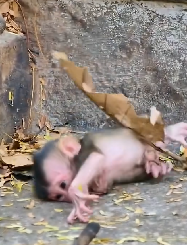Oh, this newborn monkey, once abandoned and alone, was rescued.