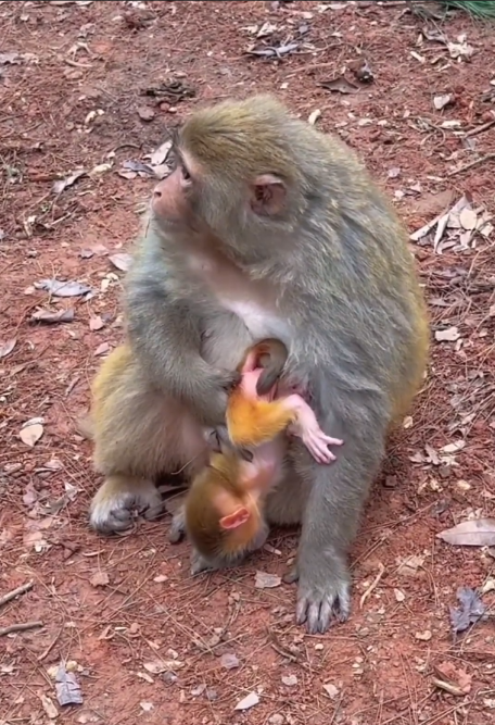From the very first moments, a baby monkey clings tightly to its mother. Her heartbeat becomes its first sound of comfort. Her warmth is its first shelter. For months, sometimes even years, the baby rarely leaves her side. The mother teaches without words—how to hold branches, how to recognize danger, how to read the sounds of the forest. In this early stage, life is small and safe, wrapped in fur and trust.
